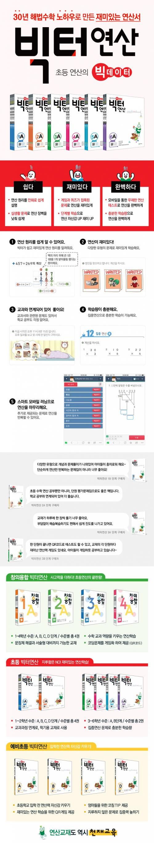 학습할 내용을 만화로 먼저 보면 흥미와 관심이 높아진다. 연산의 원리를 쉽고 재미있게 확실히 이해하도록 하였다. 수수께끼, 연상퀴즈 등 다양한 형태의 문제로 게임보다 쉽고 재미있게 연산을 학습할 수 있도록 하였다. 집중 연산을 통해 연산을 더 빠르고 더 정확하게 해결할 수 있도록 하였다.